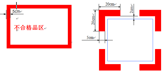 線寬60mm:不良品擺放區的劃分線(碰到三面圍墻處,第四面地面劃一條紅色實線);