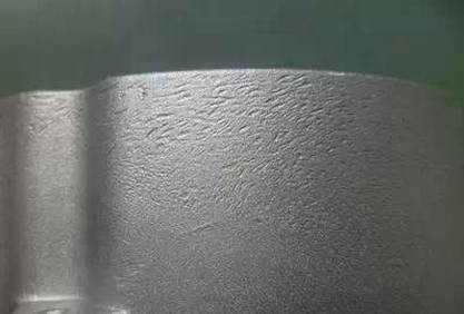 鑄件表面上有與金屬液流動方向一致的條紋,有明顯可見的與金屬基體顏色不一樣的無方向性的紋路,無發展趨勢。
