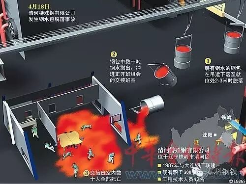 遼寧鐵嶺市清河特殊鋼有限公司發(fā)生鋼水包整體脫落事故,共造成32人死亡,2人輕傷。 該事故發(fā)生在2007年4月18日7時45分左右,裝有30噸鋼水的鋼包在吊運下落至就位處2-3米時,突然滑落,鋼水撒出,沖進(jìn)車間內(nèi)5米遠(yuǎn)的一間房屋,造成在屋內(nèi)正在交接班的32人全部死亡,2名操作工輕傷。