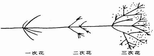 隨著碳含量的增加,在芒線上繼續爆裂產生二次花、三次花不等。在芒線附近所呈現的明亮的小點稱為花粉。